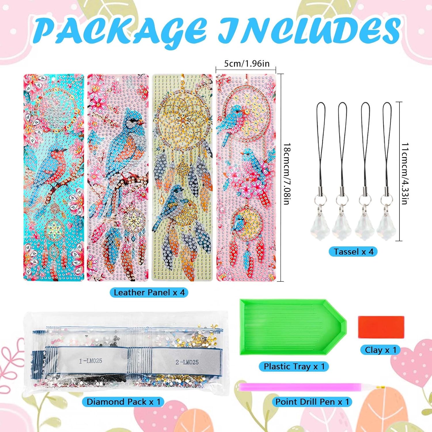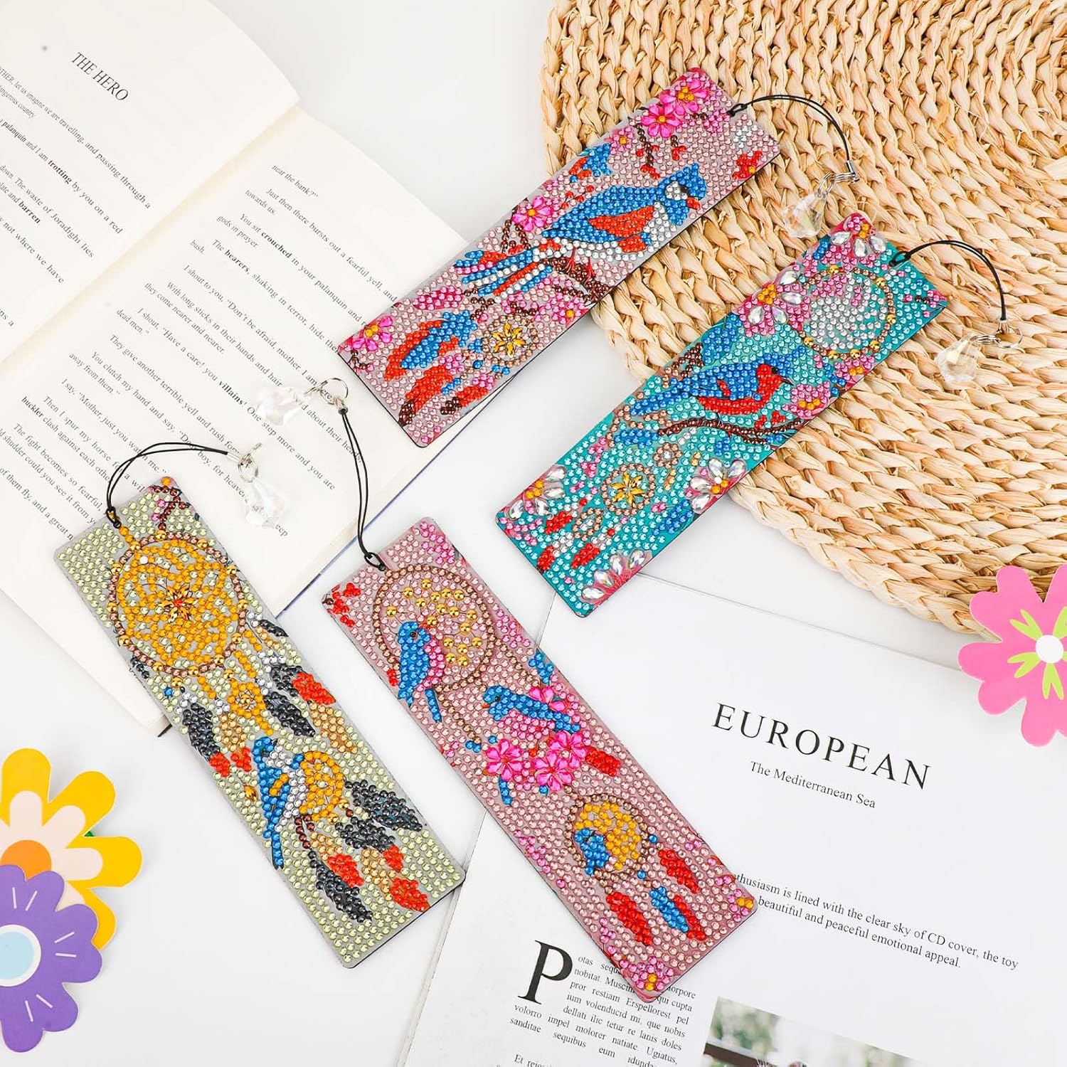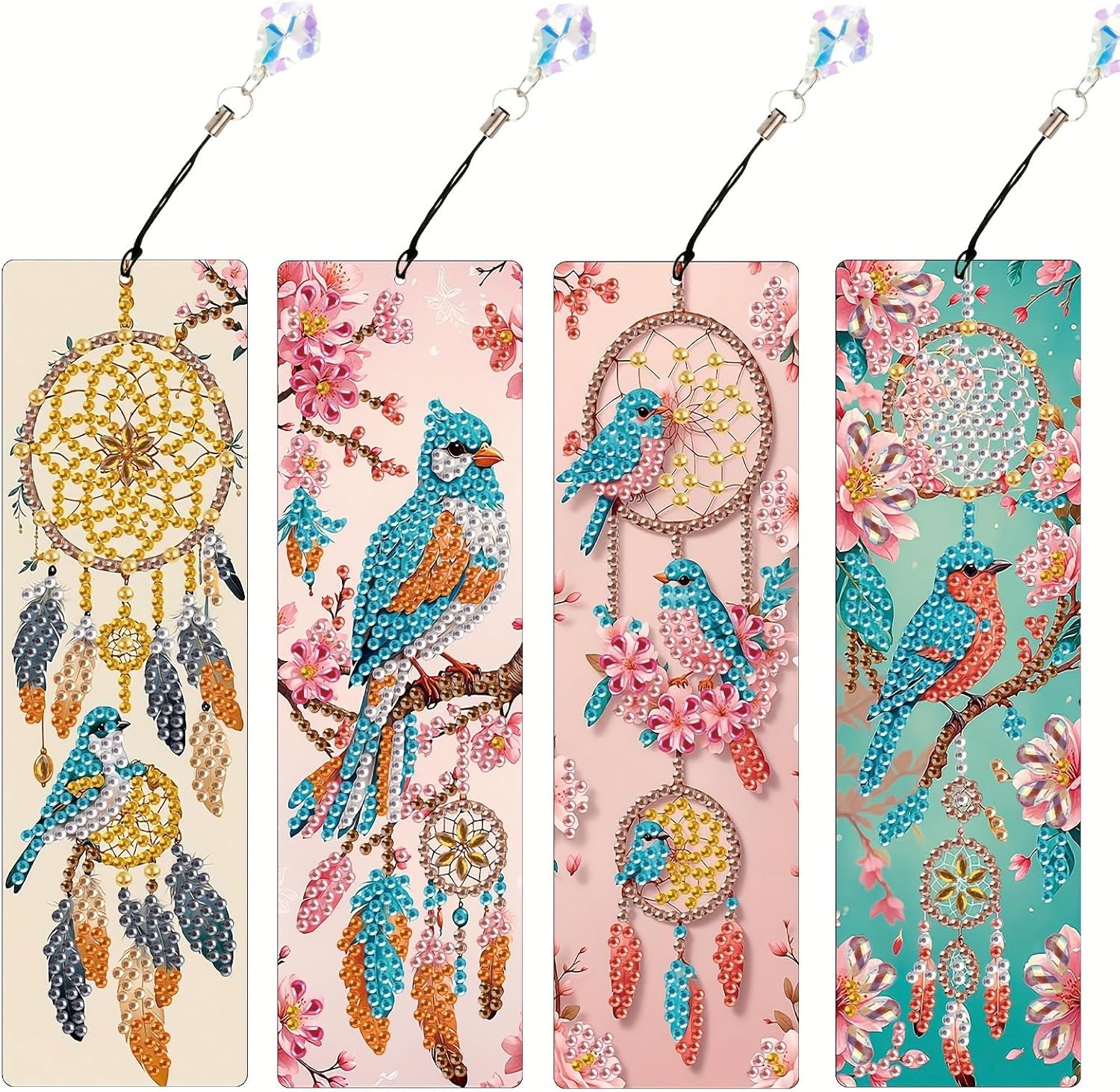 4 Stück Blumen Vögel Diamant Malerei Lesezeichen Kits,5D Diamant Painting Bookmark mit Quasten,DIY Traumfänger Buchmarken für Kunsthandwerk Geschenk