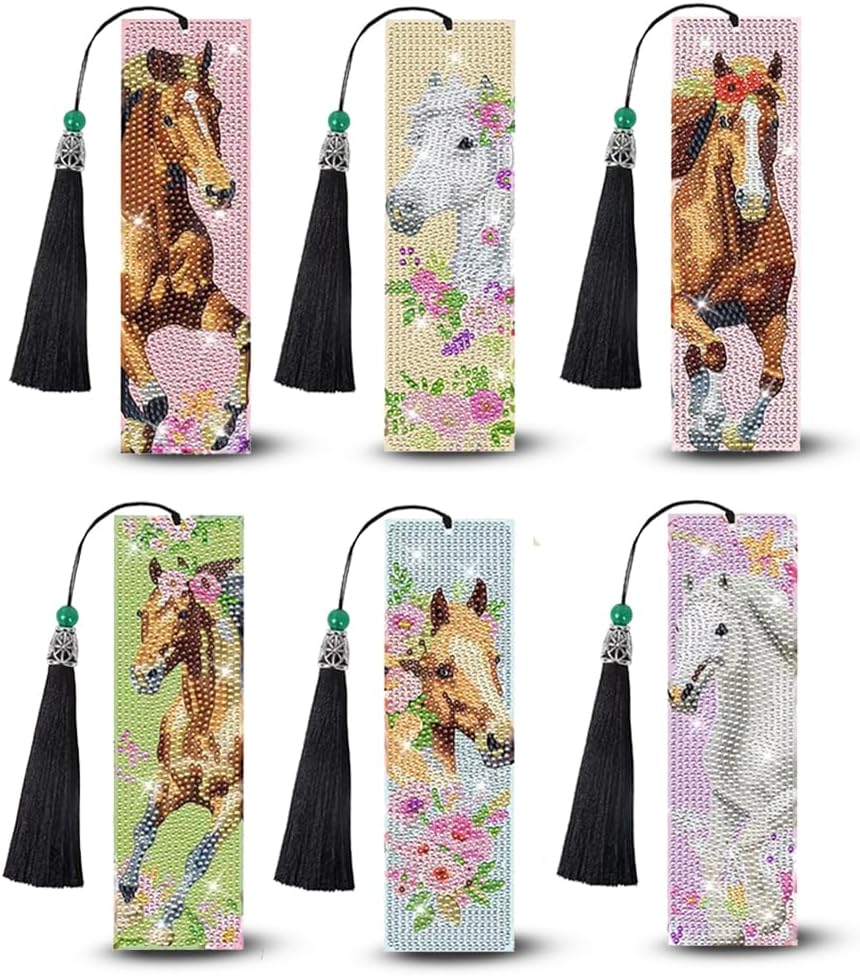 6 Stück Lesezeichen Pferd, Diamond Painting Pferd Diamond Painting Lesezeichen Diamond Painting Pferde Kinder, Diamond Painting Lesezeichen Pferd Geschenke 5D Diamond Painting Kinder Pferd